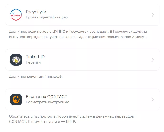 При создании аккаунта рекомендуем использовать один и тот же номер телефона в ЦУПИС, букмекерских конторах и на Госуслугах. Тогда данные между сервисами будут передаваться автоматически. Верификация в ЦУПИС и БК займет 5-10 минут, если на аккаунте в Госуслугах пройдена идентификация. Альтернативно можно подтвердить личность онлайн через Тинькофф ID или в офисах Contact за 150 ₽.