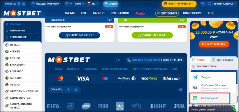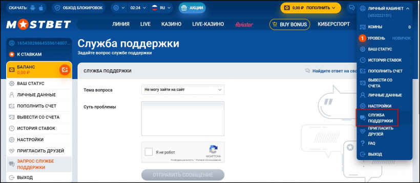 Обратите внимание! Для решения вопросов с пополнением счета, выводом средств и в случае проблем с идентификацией рекомендуется обращаться к саппорту после авторизации на сайте БК «Мостбет».